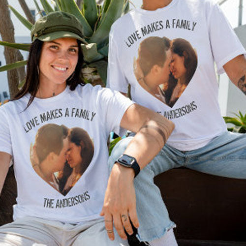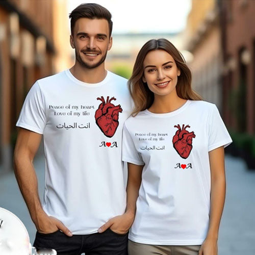 👉 Upload your favorite couple photo or text & let us print it beautifully on your shirt with the heart design.